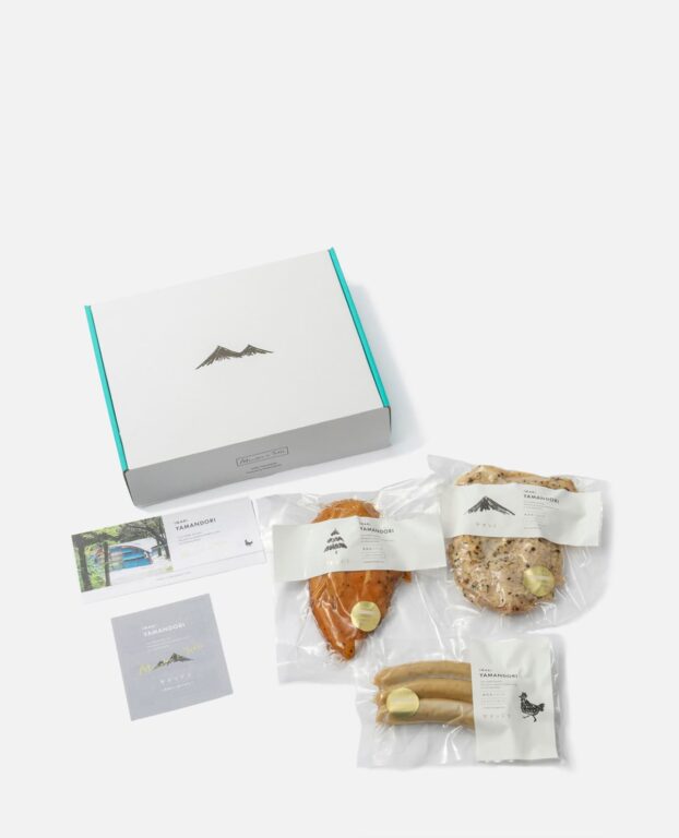 生産者である「百姓屋」が、山の鶏舎で大切に育てた鶏を使ってつくる加工品シリーズ「伊万里ヤマンドリ」。有明海の牡蠣殻を配合したオリジナルの餌と、地下から汲み上げる天然水で育った鶏は、骨が丈夫で身がぷりっと締まっています。