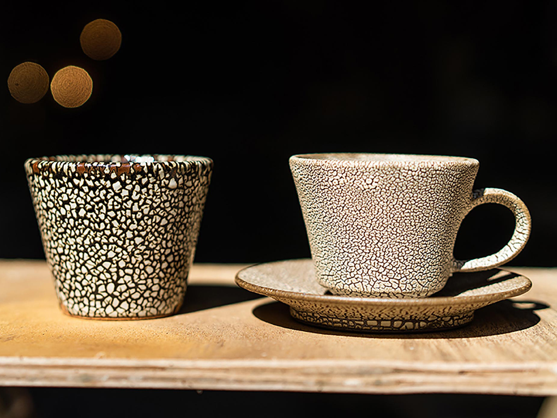 長年の試行錯誤の結果編み出された陶器の表面に入る細かいヒビ(貫入)の入り具合で独自性を表現している。