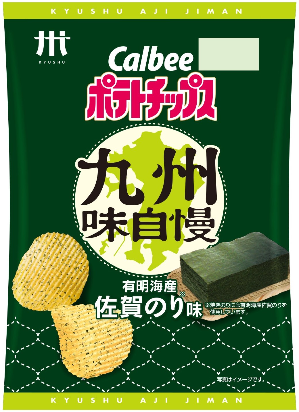 昨年8月から販売されていた自社のポテトチップス「有明海産のり味」が、使用する海苔を佐賀のりに限定した「九州味自慢 有明海産 佐賀のり味」として今年4月リニューアル。発売当初から好評な甘めの味付けはそのままに食べた瞬間から最後まで、佐賀のりの風味を味わうことができる商品です。