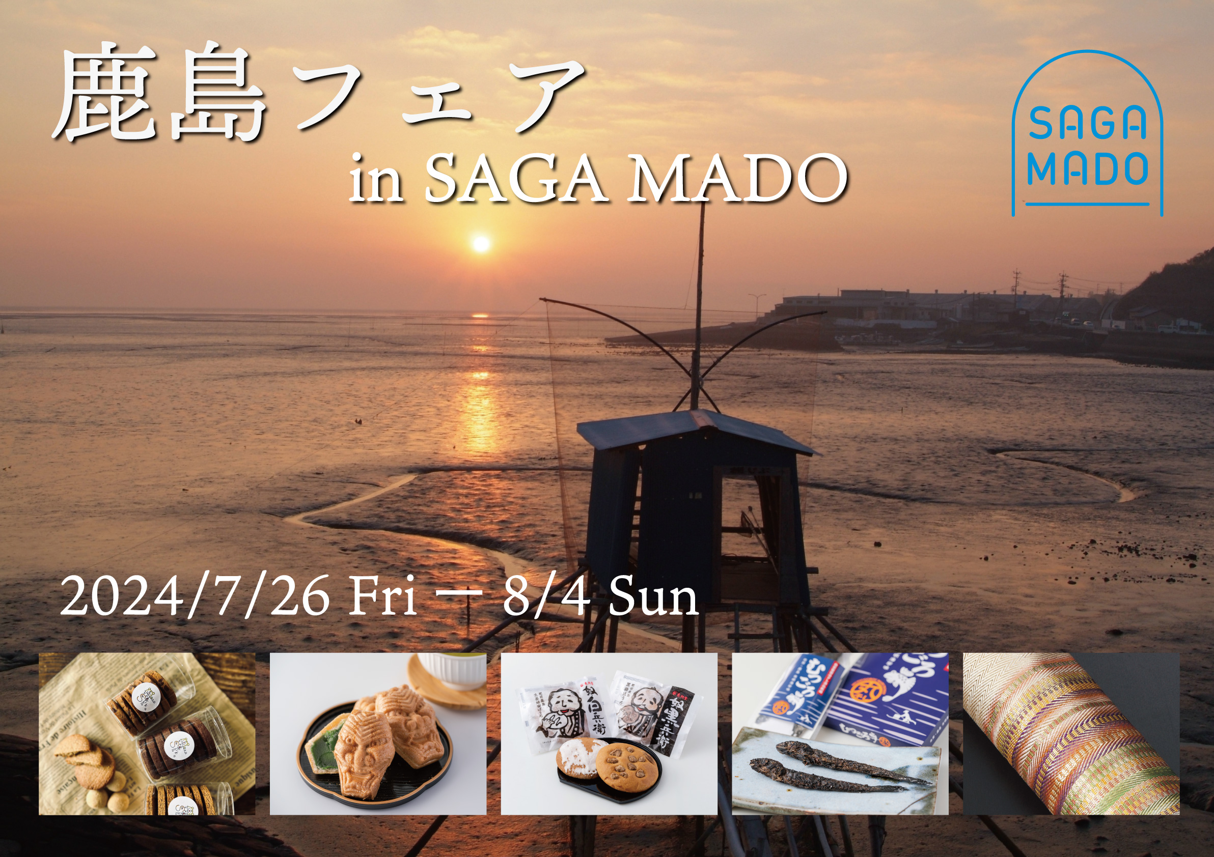 さが県産品流通デザイン公社が運営する佐賀の県産品を厳選したセレクトショップ「SAGA MADO」において、2024年7月26日(金曜日)~8月4日(日曜日)の10日間、鹿島市の特産品を集めた「鹿島フェア」を開催します。