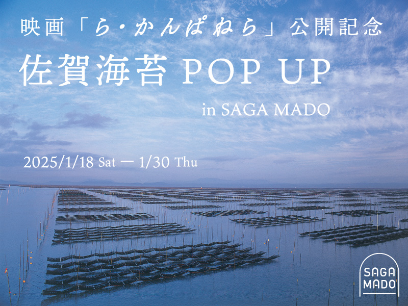 さが県産品流通デザイン公社が運営する、佐賀の県産品を厳選したセレクトショップ「SAGA MADO」において、2025年1 月18日(土曜日)から1月30日(木曜日)の13日間、独学でピアノの難曲「ラ・カンパネラ」を習得した佐賀の海苔漁師をモデルとした映画「ら・かんぱねら」の公開を記念して、佐賀海苔のポップアップイベントを開催いたします。