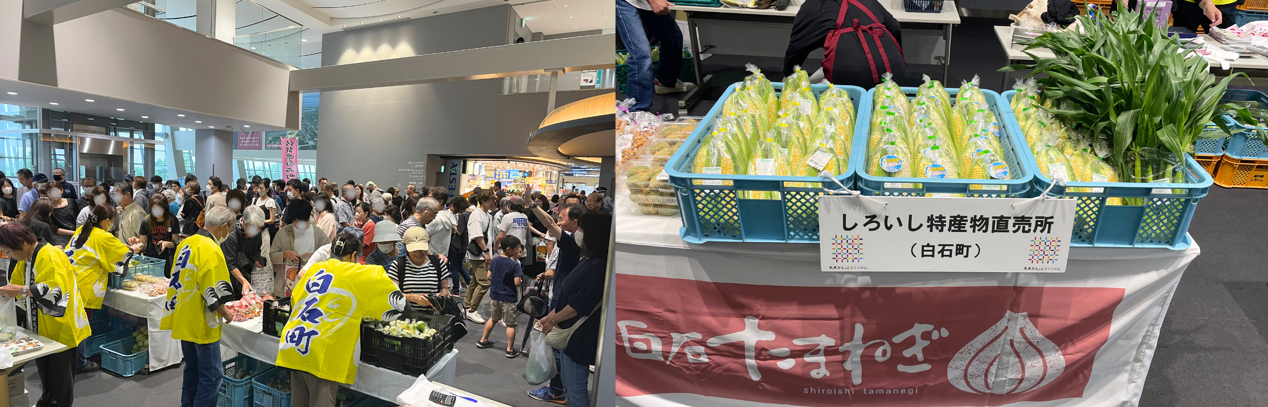 昨年6月に開催した「スイートコーンまつり」では、白石町特産物直売所連絡協議会より「しろいし特産物直売所」「道の駅しろいし」「菜海ありあけ」の3店舗が出店し、販売開始前から行列ができ、2,500本の朝採れスイートコーンが完売するほど好評でした。これを受け、今回は約3,000本をご用意いたしました。