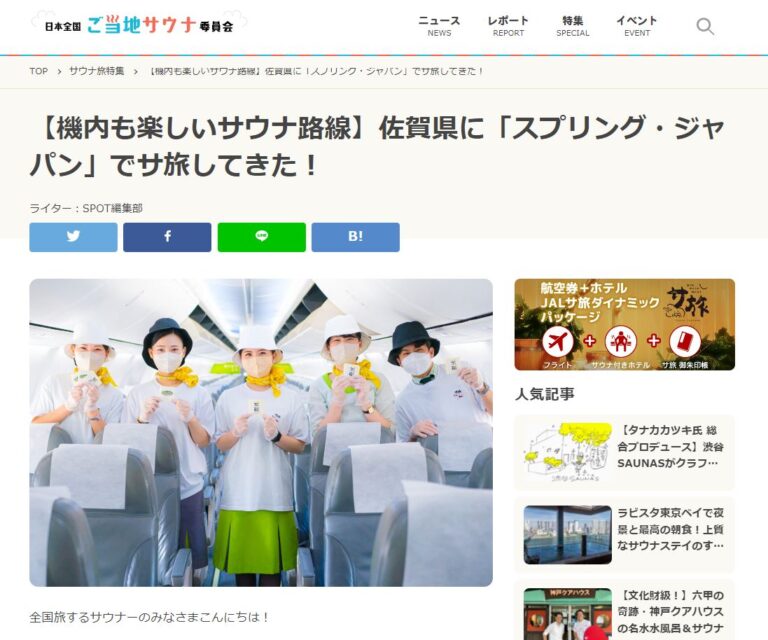 このご当地サウナ委員会の新企画「スプリング・ジャパン 成田ー佐賀間「サウナ路線」宣言!」の特設ページにて公開された体験レポート記事にて、九州佐賀国際空港のお土産店「sagair」が紹介されています。