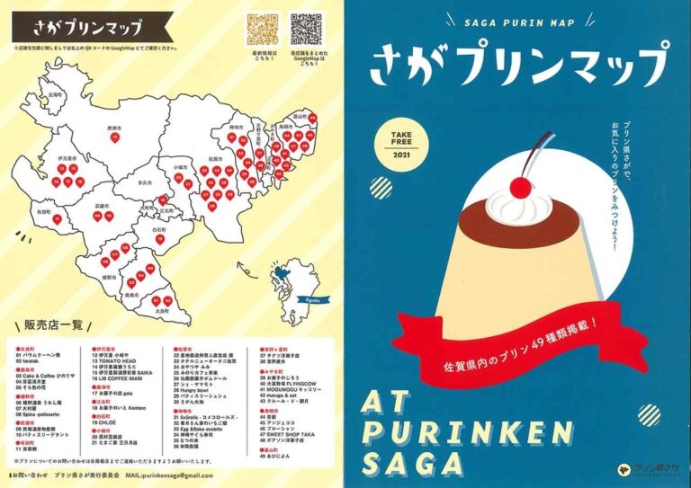 「プリンで佐賀を盛り上げよう!」をテーマに佐賀県内の美味しいプリンをマップにして、県内を巡ってもらおうという取り組みで、2020年9月に発足。みやき町の牧場で自家製プリンを販売する大富藍子さんが中心となり結成された「プリン県さが実行委員会」がボランティアで活動。2021年8月にマップを完成させました。
