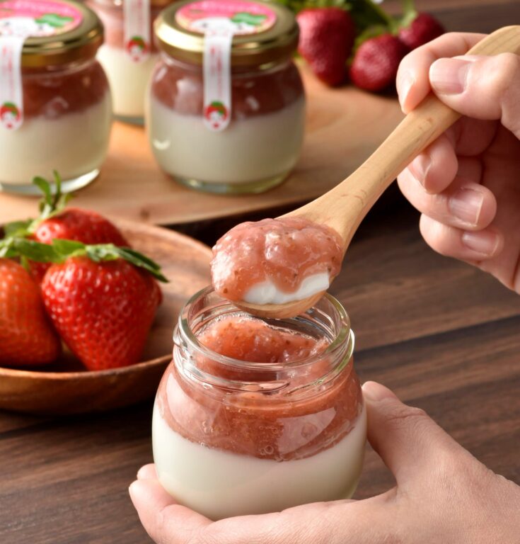 商品説明:いちご農家のお母さんが作る絶品いちごソースと牛乳プリンです。香月農園は、いちごが育つ土作りからこだわり、立ったまま作業ができる高設栽培ではなく、あえて土耕栽培を採用し常に美味しいいちご作りへの探求に余念がありません。