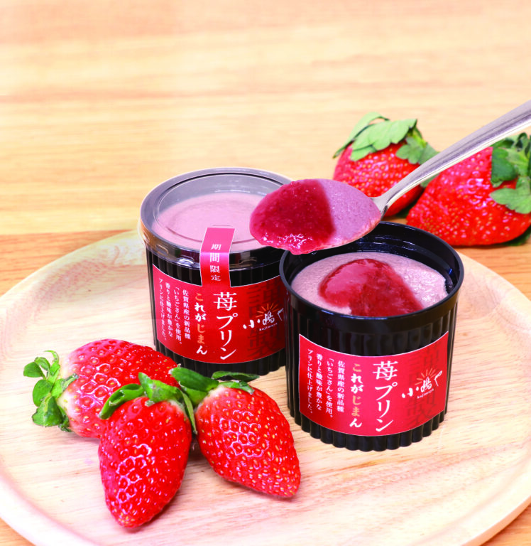 商品説明:唐津産の「村岡牛乳」と伊万里の朝採れ卵に佐賀県産の「いちごさん」を使用。原材料の 1/3 がイチゴなのでイチゴが凝縮されたプリンです。とろ~りやわらかな食感とイチゴの風味をお楽しみください。