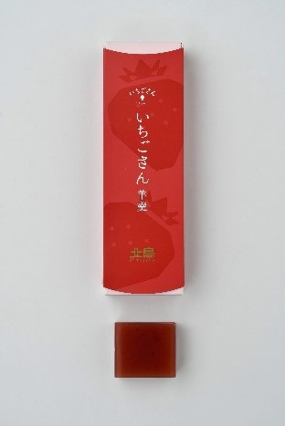 白餡にいちごさんを練り込んで作りあげた上品な甘さと香りの羊羹。瑞々しい「いちごさん」の優しい甘さと酸味が感じられます。
