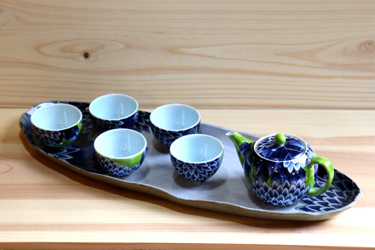 今回は、2つのシリーズの中から、テーブルに配するとテンションが上がり、晴れやかな時間が過ごせそうなティーセットや酒器セットを中心に、食事を彩るうつわを展示します。
