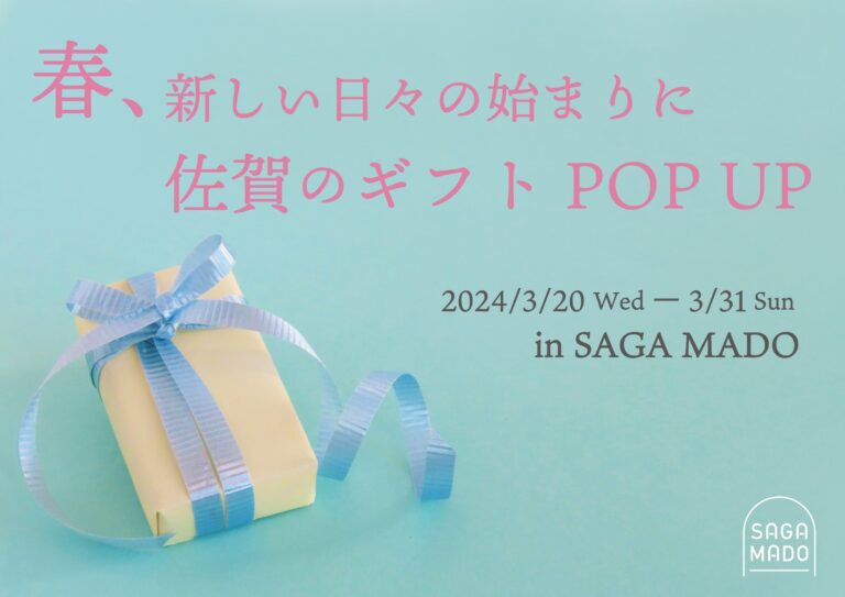 佐賀の県産品を厳選したセレクトショップ「SAGA MADO」では、3月20日(水曜日・祝日)から、贈り物にぴったりな佐賀ならではの商品を厳選したPOPUPを開催します。