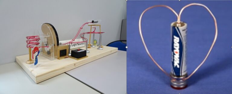 概要:電池と磁石をつかった簡単な構造のモーターづくり体験。磁力の仕組みがわかる実験装置展示。