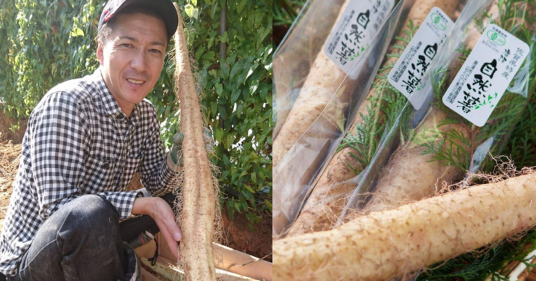 12年の紆余曲折の末、日本初のオーガニック自然薯の栽培に成功しました。「医食同源」の理念のもと唐津の温泉が湧く清涼な山々を守るために化学農薬や化学肥料を使わず安心安全で美味しい野菜を育てています。