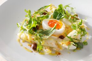 ♦「佐賀県産ホワイトアスパラガスと卵のティエド シェリービネガー風味」