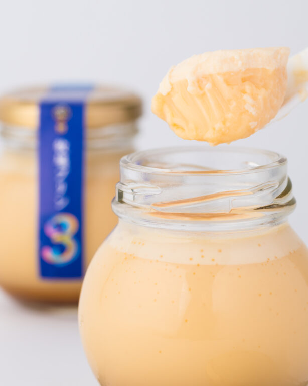 酪農家が本気でつくった熟成で味が変化する牧場プリンです。材料はたったの3つ!子供達のおやつに作っていたプリンを商品化することになり、開発を始めたのが約3年前。材料を足したり引いたり、様々なレシピを試し、試行錯誤して生まれたのがこの「牧場プリン3」。商品名にもなっている「3」の文字にはたくさんのこだわりが詰まっています。