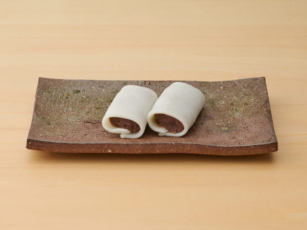 米粉の生地で餡を巻いた、素朴な和菓子。
