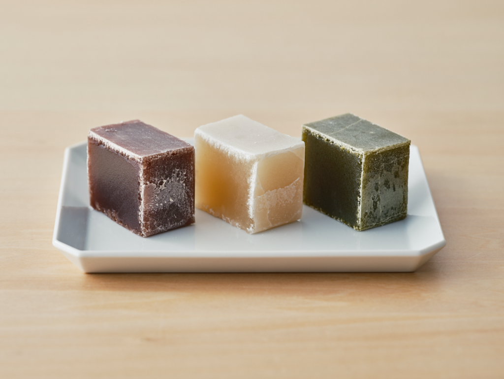 小城羊羹のルーツは、鎖国をしていた江戸時代にまで遡ります。長崎を窓口に、オランダや中国との交易が行なわれていた当時、砂糖が盛んに取引されていたことから甘い菓子文化が発展。「村岡総本舗」の2代目・村岡安吉氏が「小城羊羹」の商標で販売したことをきっかけに、ブランド羊羹として全国に名を馳せるようになりました。一般的な「練り羊羹」もありますが、表面は砂糖が糖化したシャリシャリ感、内側はしっとりやわらかな食感が特長の「昔羊羹」や「切り羊羹」、「断ち羊羹」があります 。江戸、明治、大正、昭和、平成、令和と300年以上の時が流れても、その食感は多くの人々を魅了。小豆、砂糖、寒天を材料とした昔ながらの伝統製法が、今でも確かに受け継がれています。