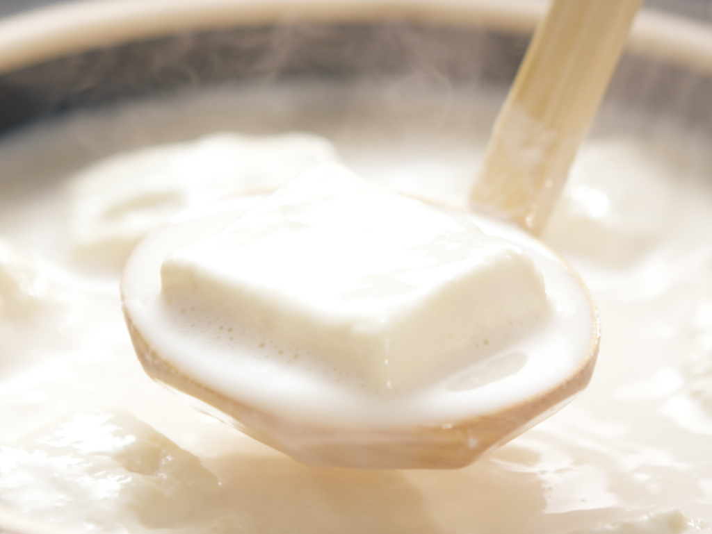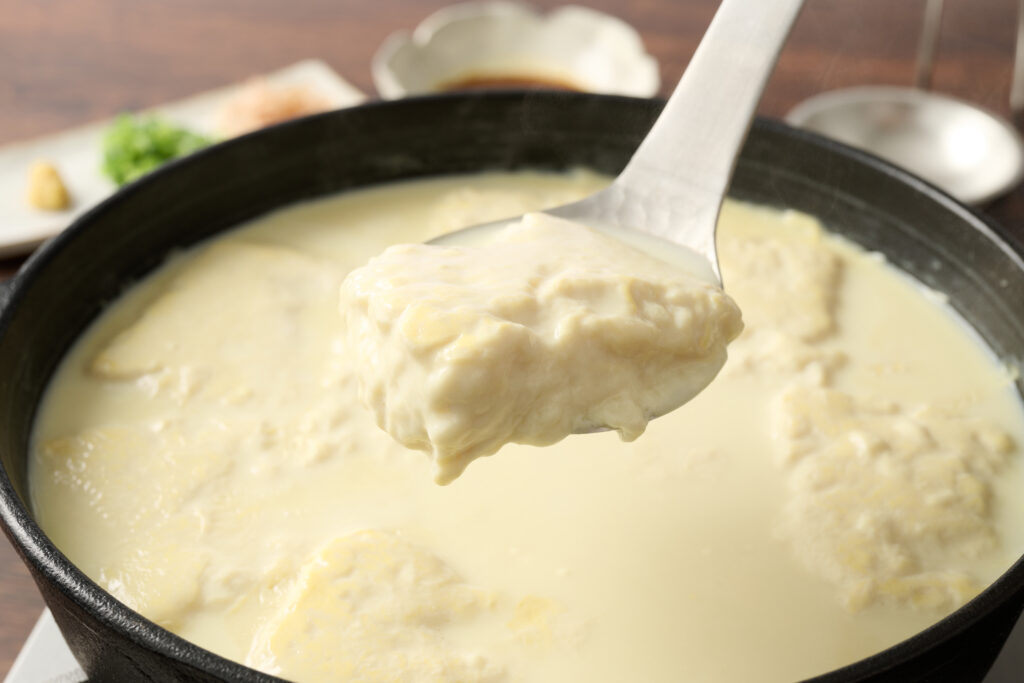 前述の通り、県内各地には多種多様な豆腐があります。日本三大美肌の湯として知られる嬉野温泉 の名物「温泉湯豆腐」は、温泉水で湯豆腐を作ることで豆腐が溶け出して汁が白濁し、豆腐のとろける口当たりが絶品。唐津市や武雄市では、昔ながらの製法で大豆本来の味が引き出された、水にさらさない「ざる豆腐」や「おぼろ豆腐」が有名。その他、豆乳に葛とでんぷんを入れた餅のような食感が楽しい有田町の「ごどうふ」や、にがりの代わりに島の海水が使われる唐津市・神集島(かしわじま)の「石割豆腐」など、ラインナップは様々。これらの名物豆腐はそのレベルの高さから、全国区で注目されています。
