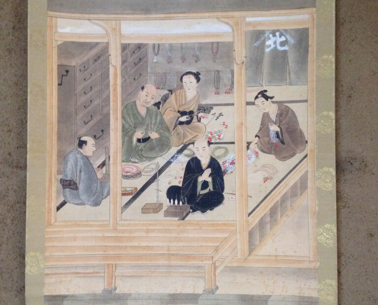 当時の人たちにとって、お寺をお参りすることは家族の大切な行事だったようです。季節ごとに人が集まる寺のそばで、品質を大事に念珠を一つひとつ手づくりしてお渡しする。そうした姿勢が、私どもの商いの原点にあります。